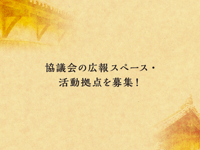 本協議会では、発足2年目の今年度から『まちなみ修景補助制度』が創設されたことを受け、この制度を地域の皆さんや関心のある方々にご理解いただき、歴史的なまちなみの再生事業を推進するため、今年度から協議会の広報スペース・活動拠点を設置することになりました。つきましては、以下の条件で協議会の広報スペース・活動拠点を公募します。ご協力いただける方は、7月21日(火)までに電話もしくはメールにて、協議会までお知らせ下さい。よろしくお願いいたします。